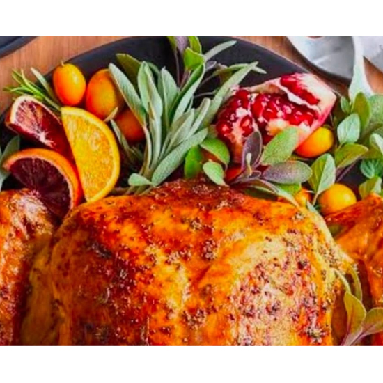 • Place herbs, onion, lemon, and orange into the cavity for fragrance.